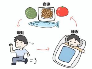 ザックリしたイメージは、一日5000歩以上歩き(適度な運動)、食物繊維やサバやイワシの缶詰を食べ、