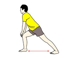ふくらはぎ、お尻~大腿裏も伸びる②鼠径部(脚の付け根)伸ばし もっと脚を後ろに伸ばすとより効果的