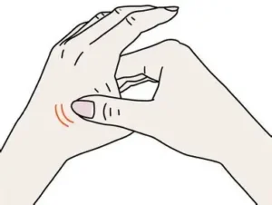 ・親指の付け根のふくらみ(拇指丘)や付け根(合谷というツボ)を押す、揉む
