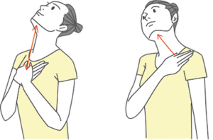 更に、噛みしめで密かにこっている首の筋肉(広頸筋)もストレッチしましょう。